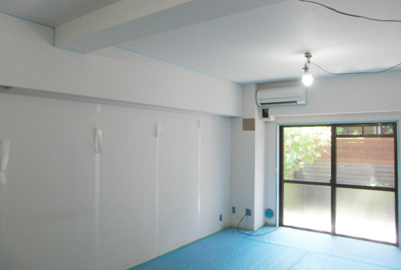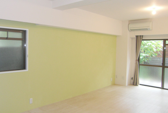 賃貸物件ですが、オーナー様の意向で天然塗り壁材(珪藻土)を施工しました。