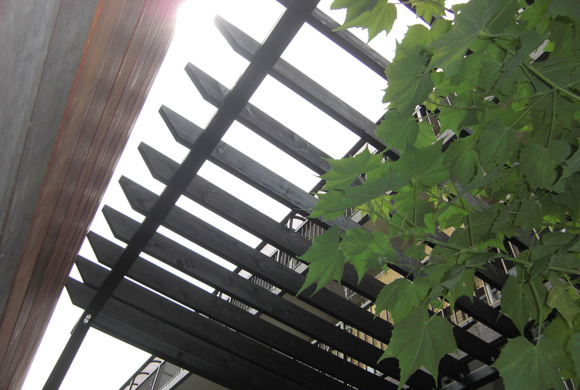 外部テラスの雰囲気作り兼 隣接建物からの目隠しの為にパーゴラを新規設置しました。