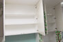 収納と内装の調和をコンセプトとし、バラバラで無数にあった棚類を一切置かなくていい様に、珪藻土仕上げの白い内装に調和させた壁面収納をオリジナル製作しました。