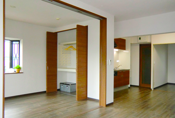 大胆な間取りは変更しなくても連引戸を入れて、入居者の空間利用の幅をもたせました。