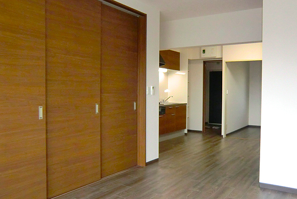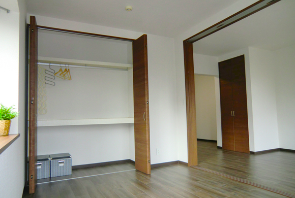 ファミリー向け賃貸ということで、床・建具等は汚れの目立たない濃い目の茶系で統一してあります。