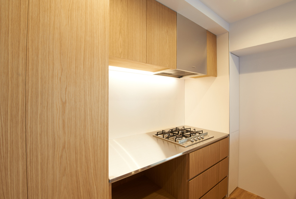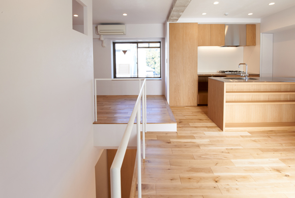 あえて段差を付けたり、材質を変える事によって小スペースでも違った空間が味わえます。