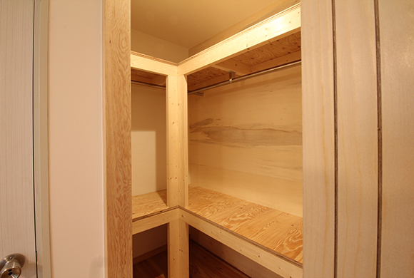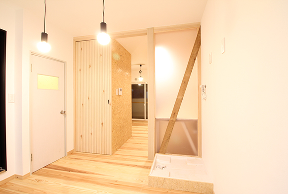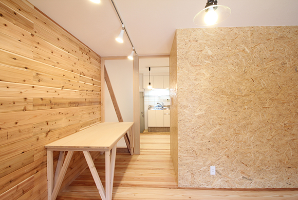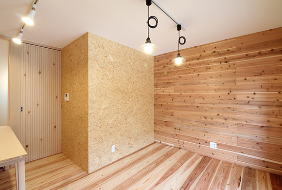 杉・OSB合板等の比較的安価な部材をバランスよく使っています。